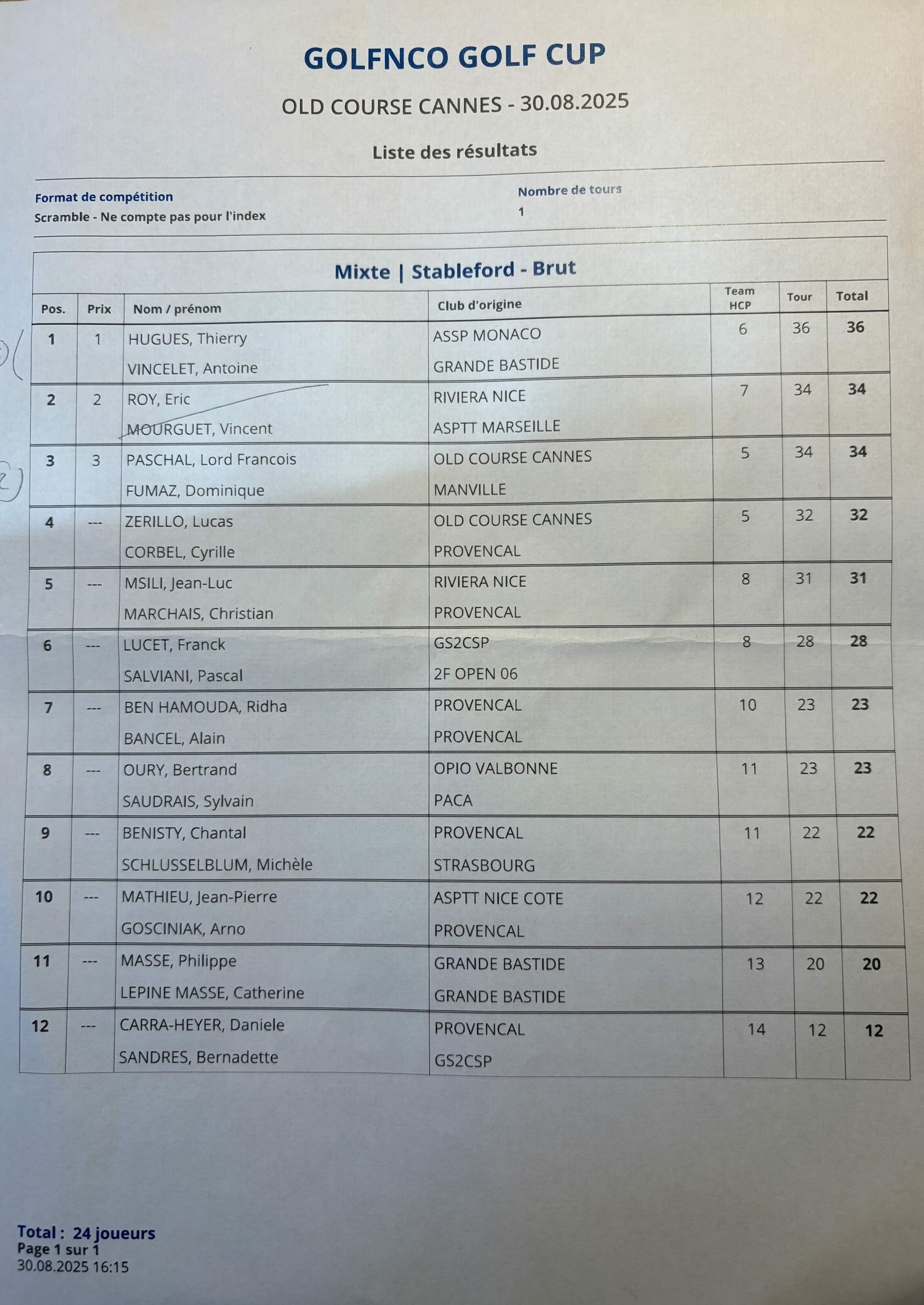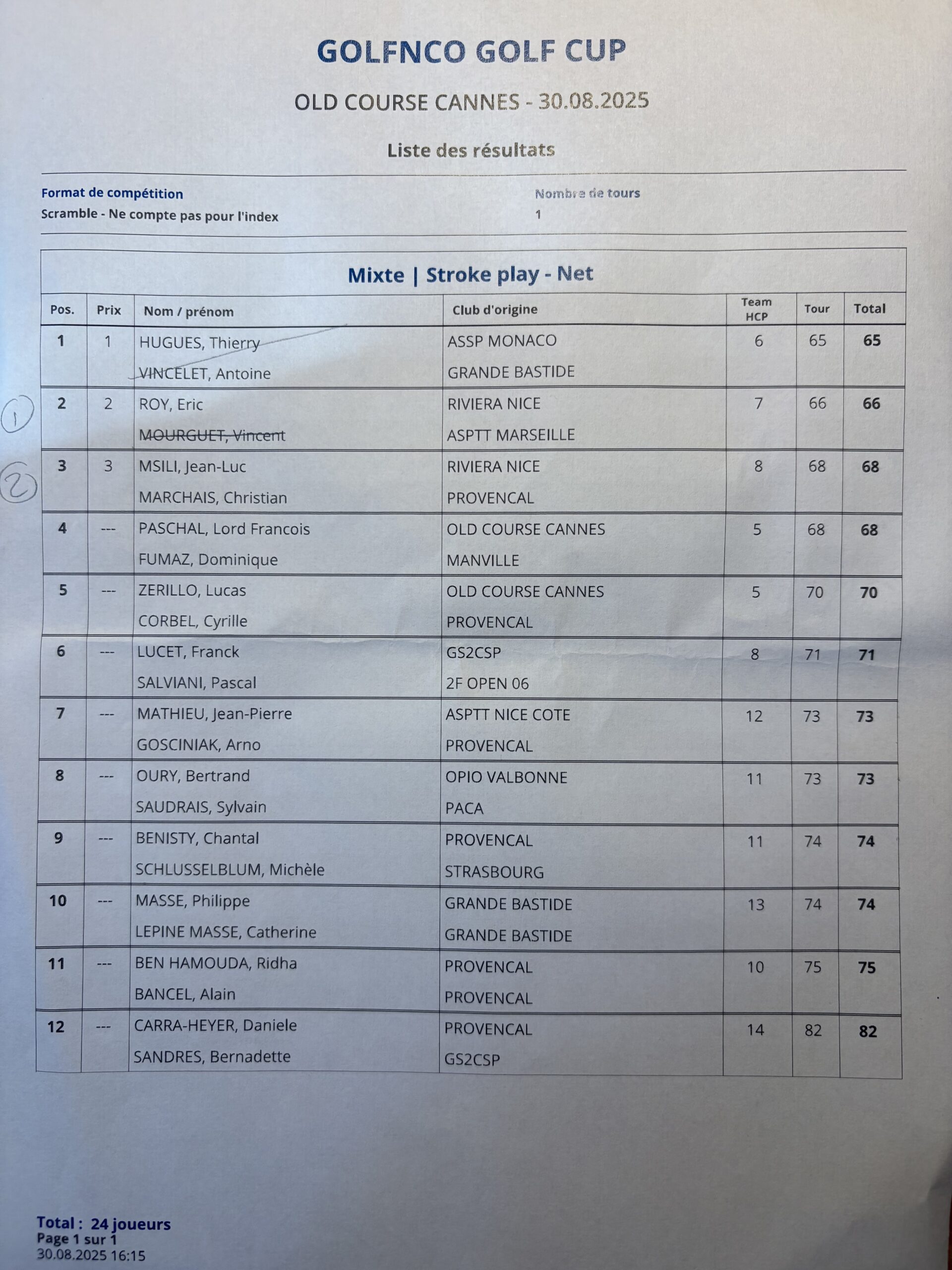 - Récompense pour les deux meilleurs scores en Brut et en Net, toutes catégories confondues