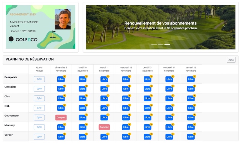 Les abonnés Golfnco se partagent un nombre de départs quotidiens sur chaque golf. Notre système garantit que chaque joueur trouvera un golf disponible à tout moment. Le modèle se veut aussi le plus souple possible :